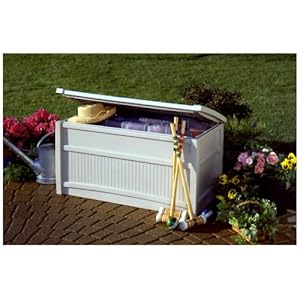 Keep frequently used garden trowels and clippers accessible by stowing such tools in this convenient 50-gallon deck box from Suncast. The deck box provides 6.8 cubic feet of storage on a household patio or deck, creating a handy spot to conceal the typical yard clutter of miscellaneous tools, toys, dirty soccer cleats or gardening clogs and other outdoor fare. In addition to the storing space, the deck box also blends into décor with ease.